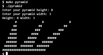 get_input(); // Returns "pyramid" structure with user defined "height" and "width" variables