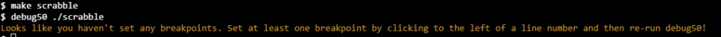Even more annoyingly, the CS50 debugger broke down! I put a break in at the secondary input of some early code, but the debugger was insistent no break had been placed!